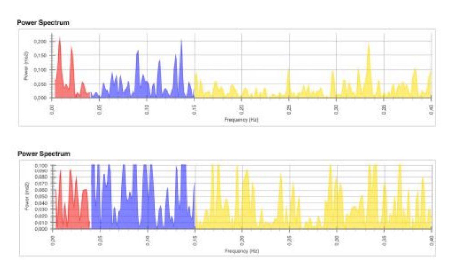 CV ... „ein Mas für die Biegsamkeit der HRV“. Ausmass der Streuung von Messwerten um einen Mittelwert. • Power Total (mS2) … auch Total Energie (Total Power) genannt. • LF/HF ... Verhältnis von LF zu HF. Ausdruck der vegetativen Balance von Sympathikus und • Parasympathikus (sympatho – vagale Balance).